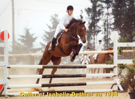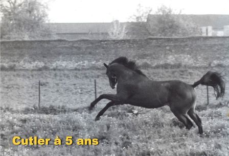 Il possédait de charmantes petites oreilles toujours pointées droit devant. Avant nous, il avait transité par une écurie de dressage de Binche. Bien qu'il soit né en Angleterre, personne ne savait s'il avait foulé le turf anglais. Il était venu en Belgique pour les courses de galop et il semble qu'il en couru deux ou trois sans réussite avant d'être acquis par les dresseurs binchois Je l'avais acheté par commande d'un père qui voulait l'offrir à sa fille, cavalière au Bois du Roi. Mais il s'est avéré que Cutler était trop difficile. Je l'avais sur les bras et c'est presque contraint que je décidai de le prendre comme monture pour moi (j'avais envie de travailler un cheval) et peut-être comme cheval de concours dans le cas ou un élève s'en accommoderait.