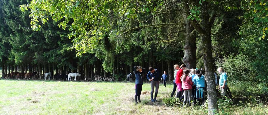 Premières minutes de la pause à mi-journée. Les chevaux se reposent à l’ombre et les randonneurs