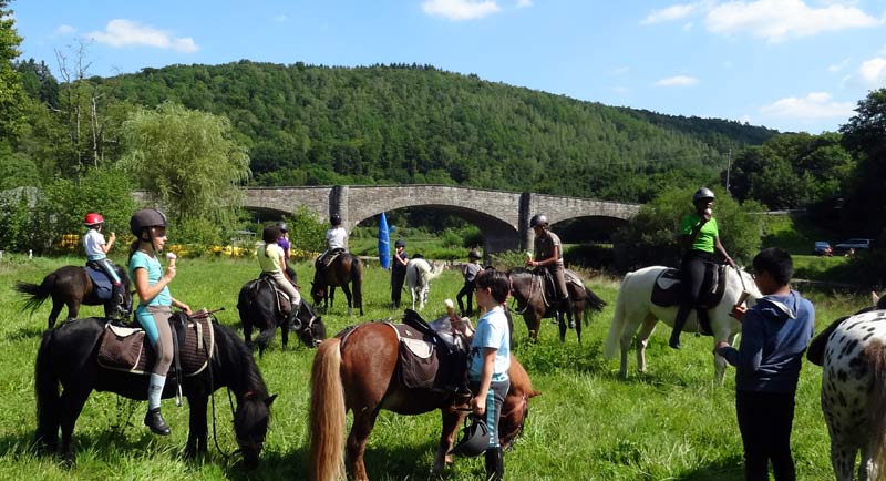 Pause glaces avec au fond le joli pont de Vresse sur Semois.