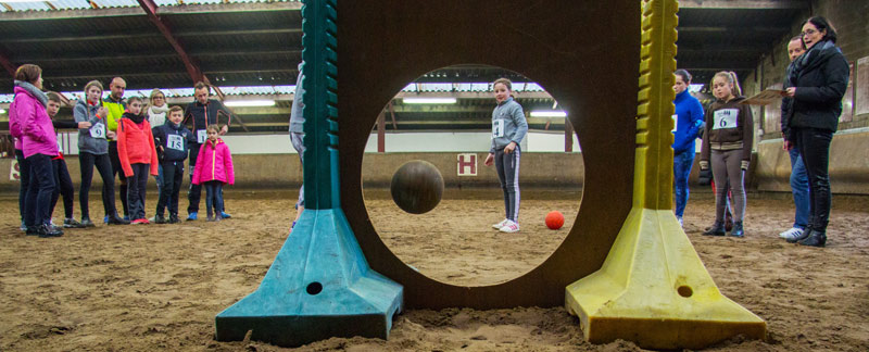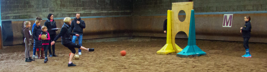 Du pied, Lucine Rompen marque un point à l'épreuve d'adresse.