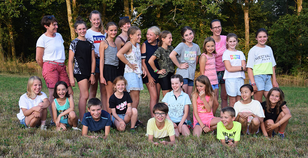 Liam Vanderheyden, Apolline Plusquin et Anaelle Antoine. Debout : Monique Gathoye, Chloé Migoto, Romane Chevalier, Tess Infantino,