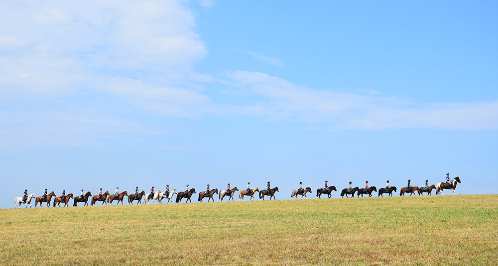 Les forts reliefs et les circonstances variées de l’équitation d’extérieur procurent aux apprentis cavaliers