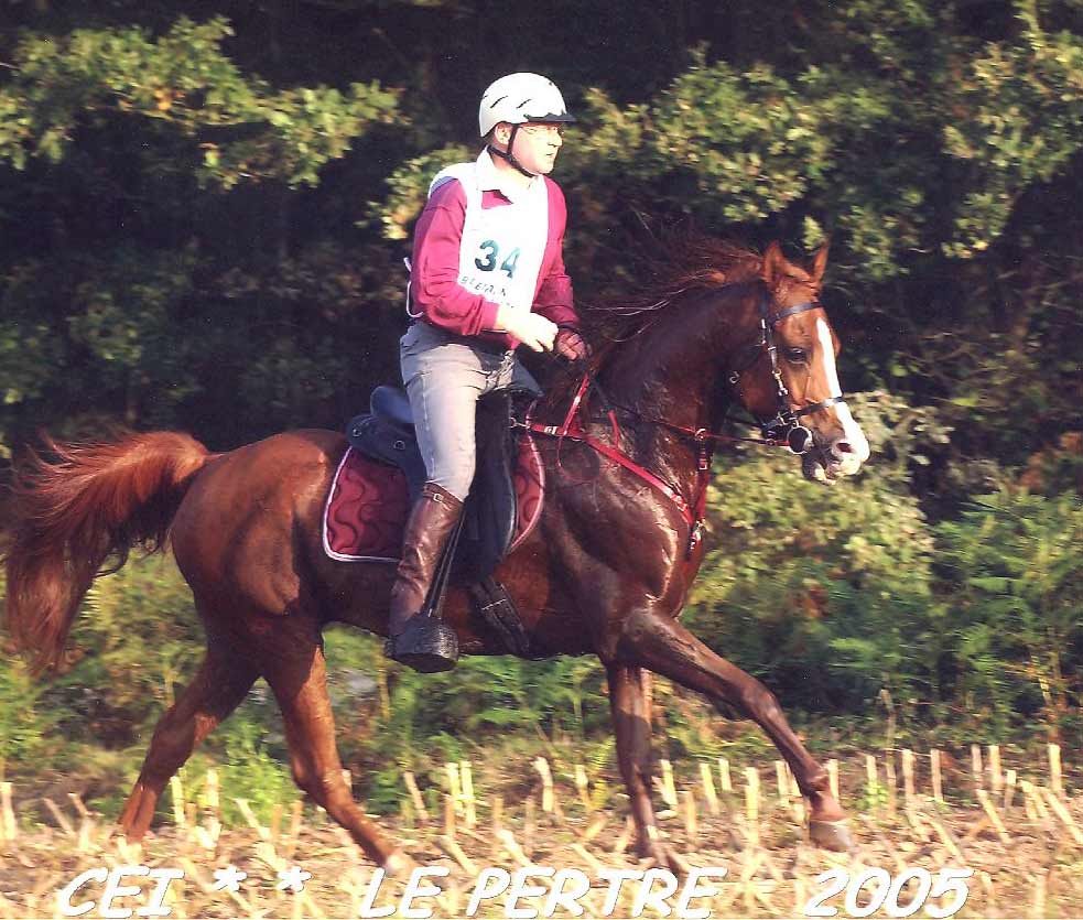Le samedi 15/10, nous nous étions rendu en Bretagne pour une course internationale de 120 km où j'ai monté Kwinjy. Le niveau des cavaliers français est très élevé. Les vitesses atteintes sont extraordinaires et Kwinj est insuffisamment aguerri. Nous avons été éliminés ( boiterie AG) après 63 km seulement. Nous apprenons et je suis convaincu que cette expérience nous servira dans le futur. (octobre 2005)