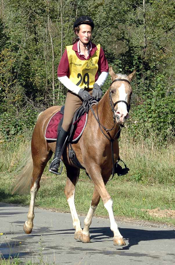 Ce même week-end, May-By et moi étions engagés dans l'épreuve de 120 km en deux jours. Malheureusement, une boiterie postérieure le premier soir a éliminé May-By qui avait pourtant fait bonne impression jusque là. Endurance Bierbeek octobre 2005 |