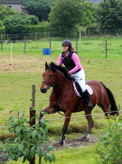 Vers mars 2011, Marie Lequarré l’a débourré très aisément, « le plus facile de tous ceux que j’ai faits ! » Puis, grâce à Marie Lonay, le poulain a enfin pu vivre quelques mois tranquilles au pré, comme cela se devait. Cet hiver 2011-2012, il est confié à Stéphanie Schmetz afin de compléter son éducation. Il évolue au mieux de nos espérances. Une fois de plus une satisfaction due au travail d’équipe. (février 2012) |