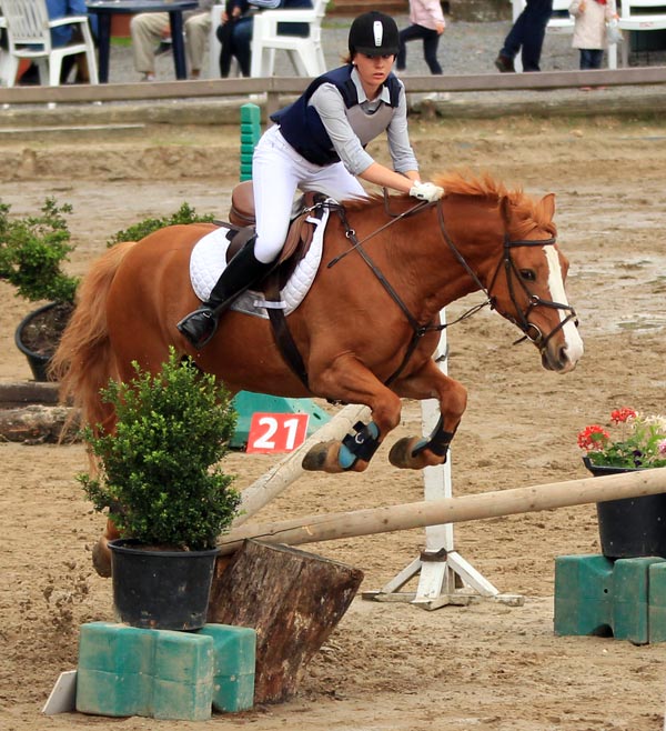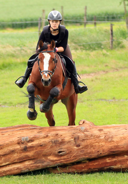 Laura Vyghen et Rébaby sur l'obstacle 5, un table étroite et assez large qui venait 3 ou 4 foulées après le contre-bas.