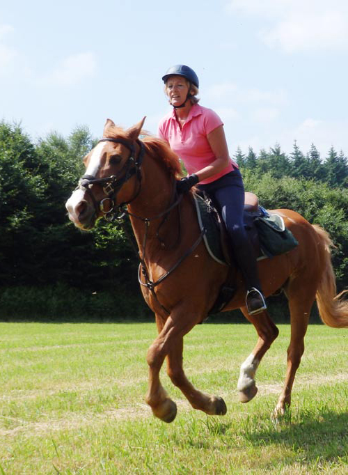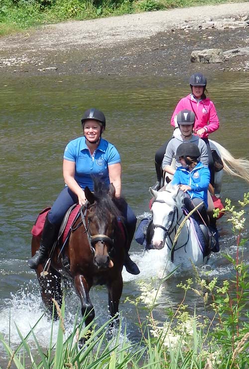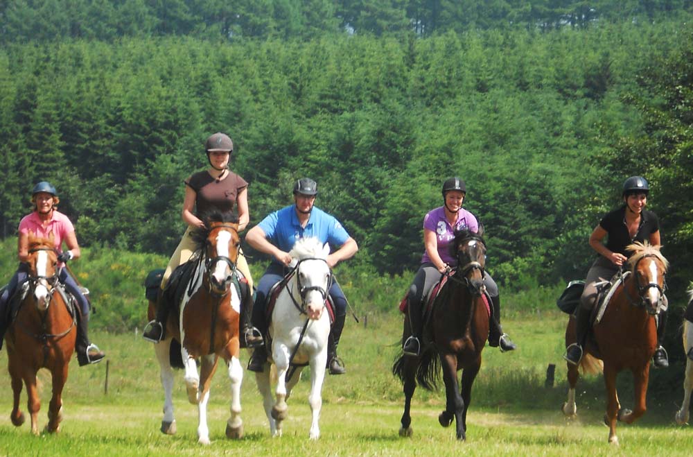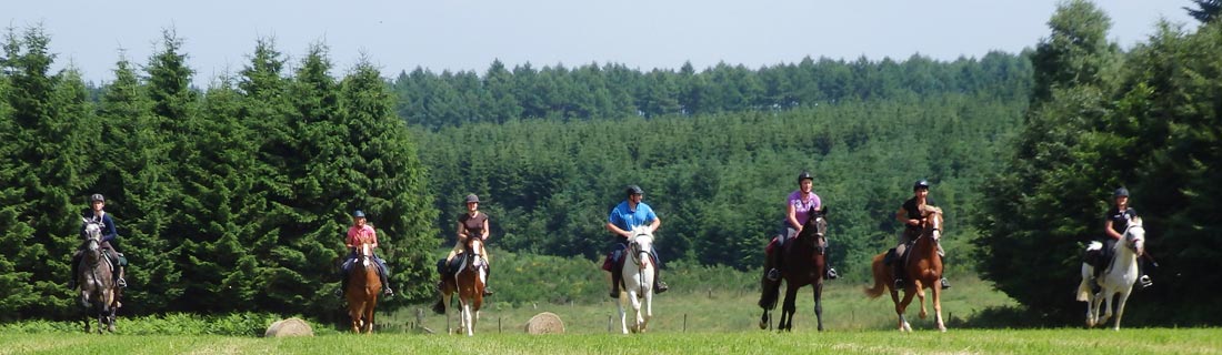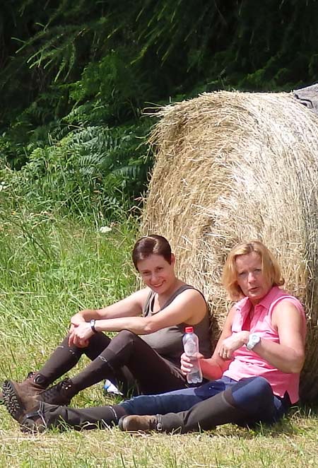 Quelques galops dans les prairies fauchées, de g. à dr. : Eliane Beckers et Bisou, Rosalie Niwa sur Y-Bob, Dominique Laruelle avec Graffiti,