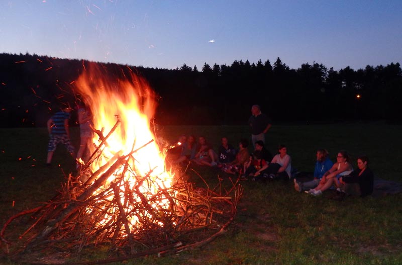 Veillée autour du feu. L’esprit comme fasciné par les flammes, le groupe s’apaise.