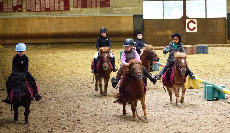 Par champs, bois, rivières, les enfants sur poneys et shetlands