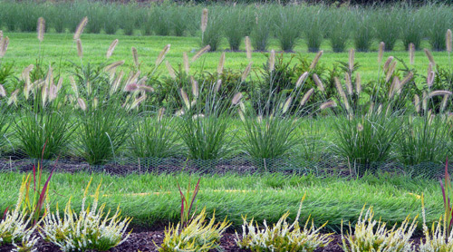 La parcelle de prairie dite « des shetlands » est plantée afin d’augmenter la taille du jardin. Au printemps et à l’automne, des milliers de graminées, bruyères, arbustes trouvent une place,