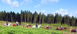 Beaux moments d’équitation et d’amitié. Randonnée de trois jours à travers la forêt de pins et les landes des environs de Genk. L'étape de retour Genk – Bois du Roi compte 52 km.